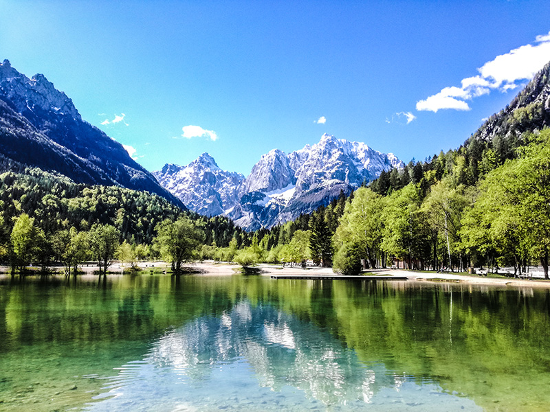 Pred začetkom prvih zavojev ceste na Vršič se ustavite na kratek oddih pri jezeru Jasna. Sestavlja ga dvoje medsebojno povezanih umetnih jezer ob sotočju potokov Velike in Male Pišnice.